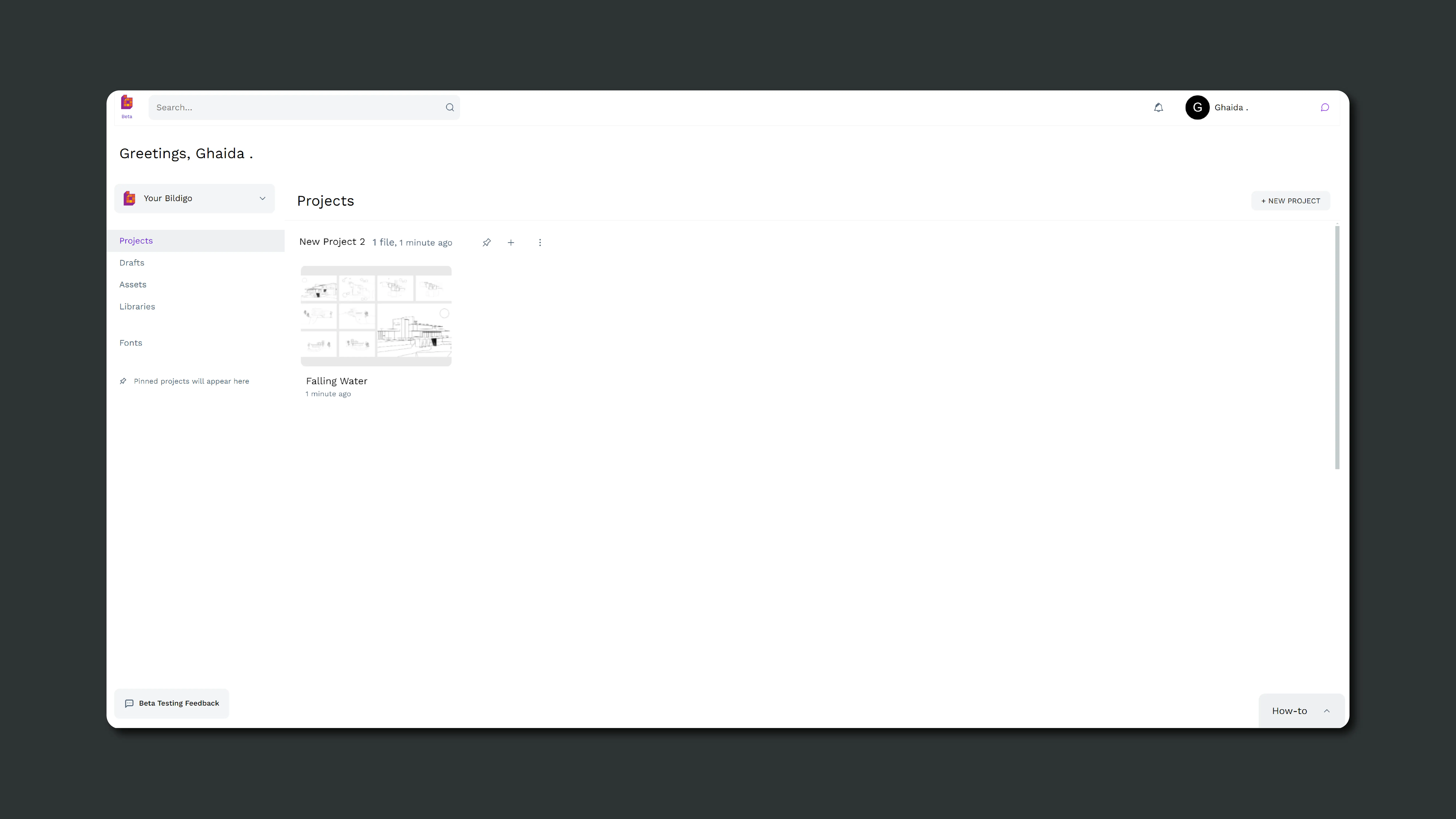 - Drafts: The drafts section is where you can find the design files that are not inside any project.