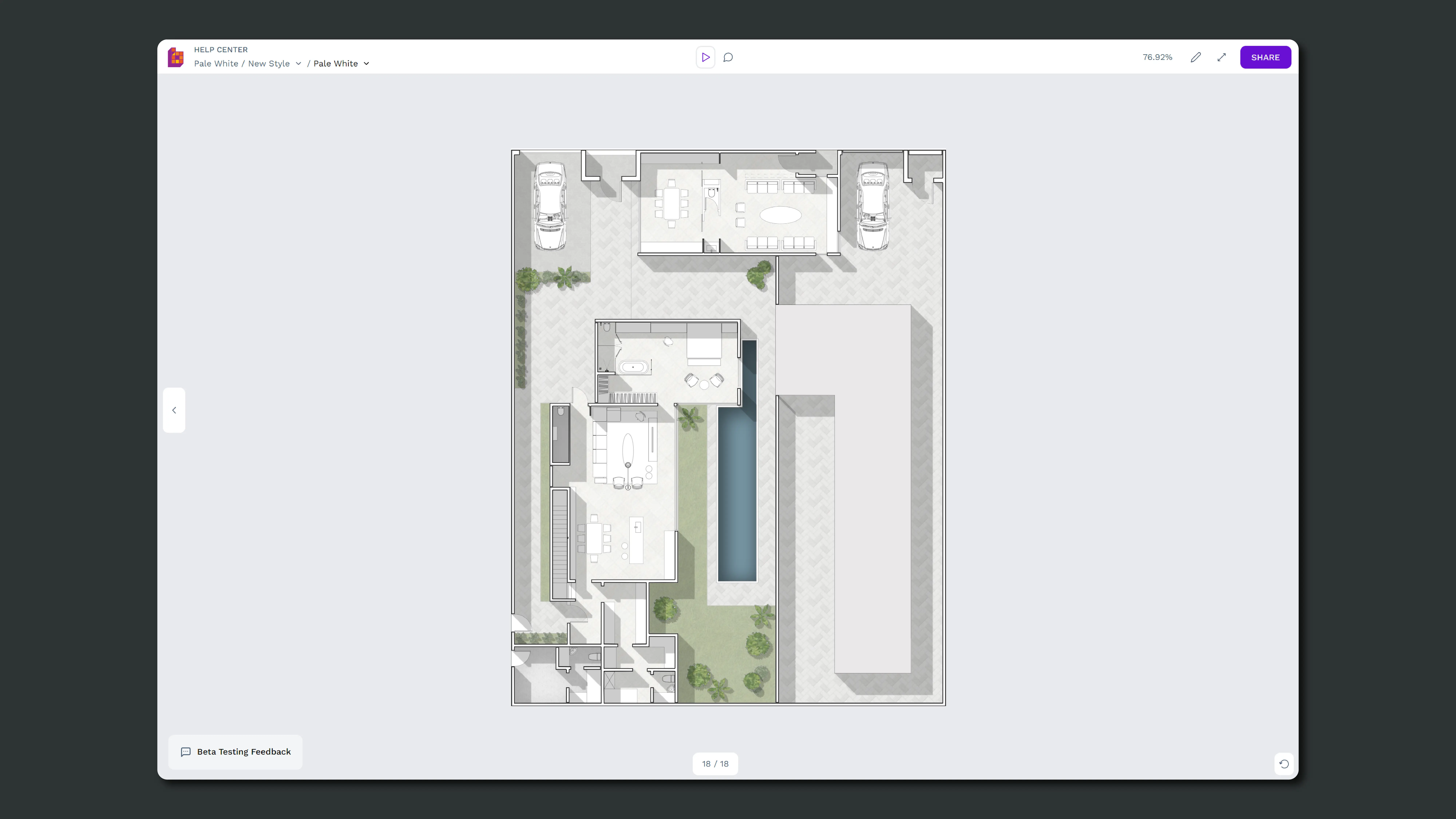 - Share prototype: Create shareable links of the view mode to send it to developers, other designers or stakeholders, so they can view the designs and access the code specifications regardless of being at your team or even logged at bildigo.
